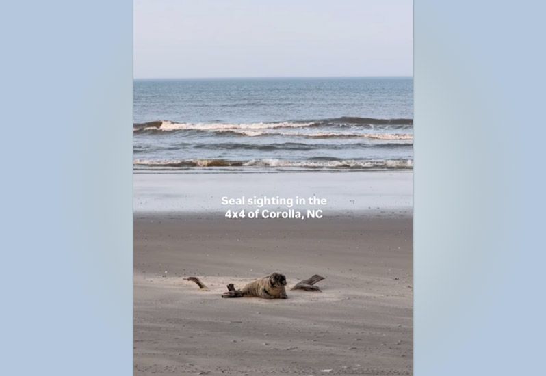 This sleeping beauty has been resting on the shore of Carova for over two days. There is a wide area blocked off for the seals’ safety, and volunteers on-site. 🩵 The Outer Banks is full of surprises everyday!