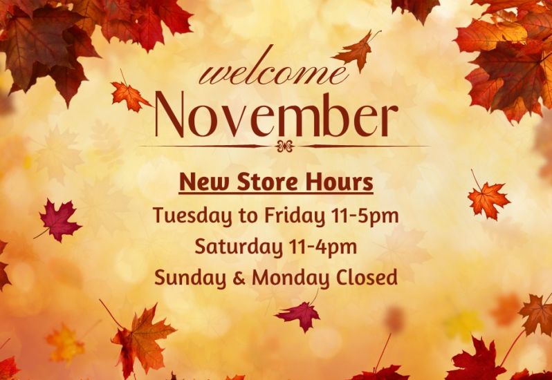 We are still open but just changing to our Fall hours. Come see all the new shirts & sheets we have in stock!