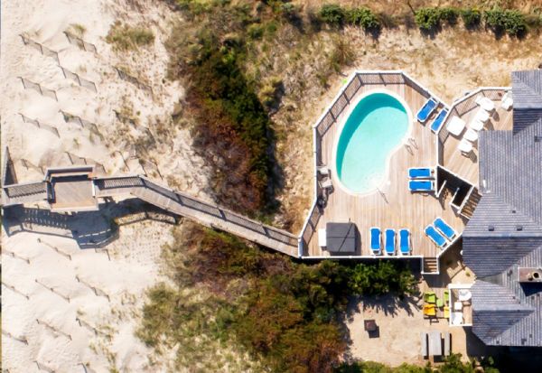House features 🏠 7 Bedrooms + 7 Full Baths | 330 yards from Beach Access | Private Pool & Hot Tub | Volleyball Area | Saturday Check-in & more!