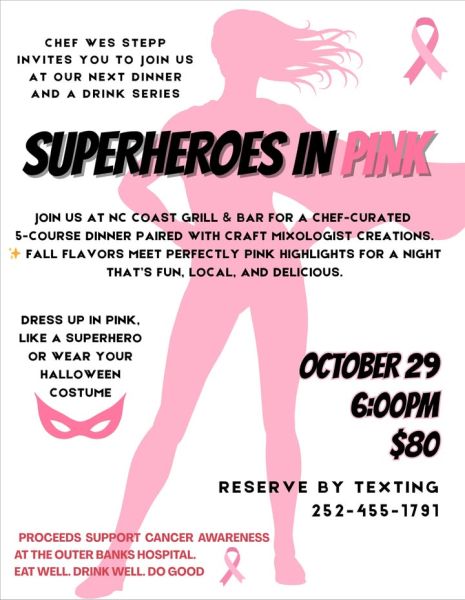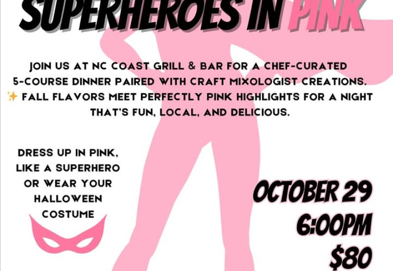 I’m throwing on my pink cape and inviting YOU to join me at NC Coast Grill & Bar on October 29 at 6PM for something extra special: Superheroes in Pink 💪💖