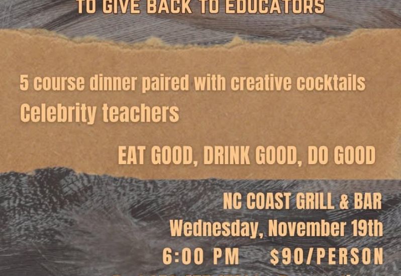 Join us Wednesday, November 19 at 6 PM for Flavors of the Fall, a 5-course dinner paired with creative cocktails. A portion of proceeds will support the Teacher Wellness Retreat 2026, designed to bring mindfulness, rest, and care to those who give so much.