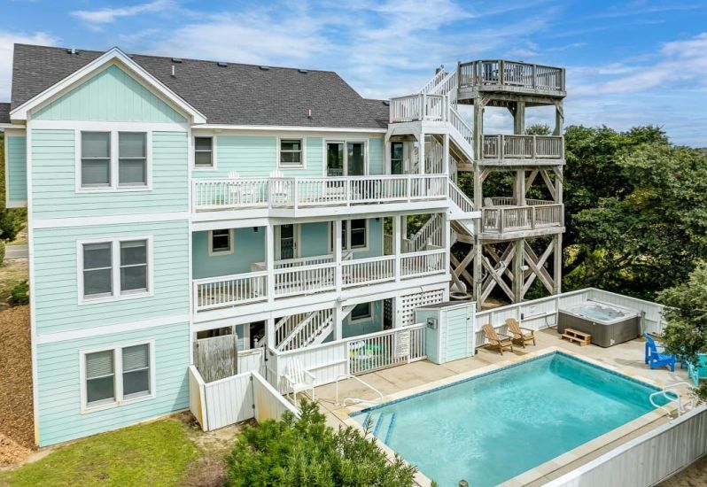 Livin The Dream is a 4 bedroom, semi-oceanfront home in South Nags Head that offers a private pool, hot tub, pool table, beach gear credit, and more. Guests noted that the home had such a warm, welcoming vibe along with a huge pool deck, spacious areas for the kids, and an easy walk to the beach!🌊