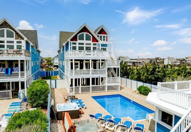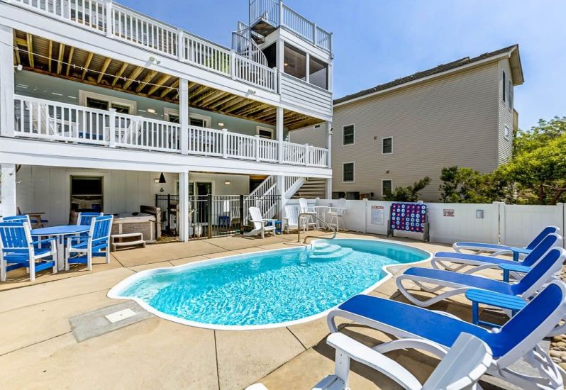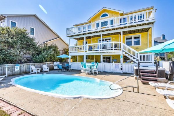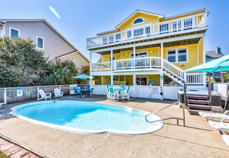 Southern Paws is a 6 bedroom, dog-friendly home in Corolla that offers a private pool, hot tub, pool table, and outdoor dog wash station. Guests noted that they have rebooked this home multiple times due to the size for their multi-family vacation, the pretty lake views, and because they notice every year how cared for the home is!🩵