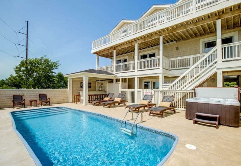 We Are Beachin is a 6 bedroom, dog-friendly, oceanside home that's new to Blue for 2026! The home offers a private pool, hot tub, foosball, easy access to the beach, and community tennis & pool!🤩