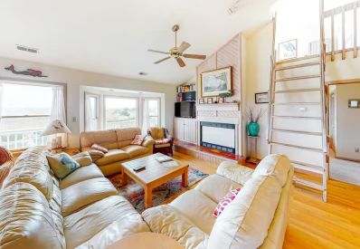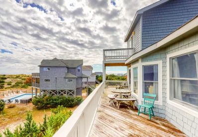 Oceanfront Dunluce is your castle in the sand in Waves, Hatteras! This 5-Bedroom classic beach cottage offers 360-degrees of wraparound decks on the first-level and so much more. Come and enjoy fall on the Outer Banks 🍂