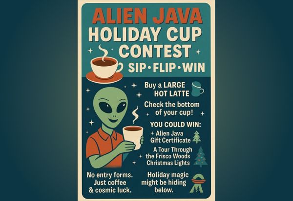 A mysterious latte that tastes like twilight in the stars! The August drink special is Nebula Nights! So out of this world delicious!