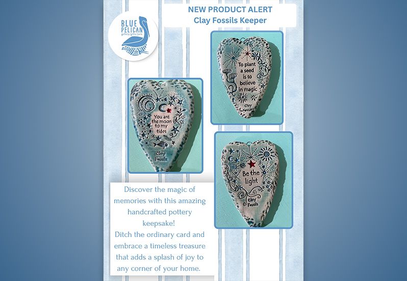 We LOVE these sentimental clay hearts with stamped messages. Individually handmade in NC. 🩵🩵🩵. See our selection online at https://www.bluepelicangallery.com/.../clay-fossils.../