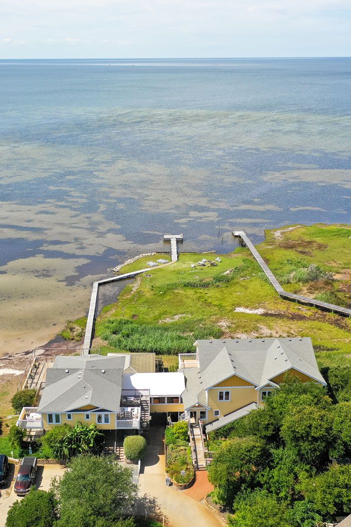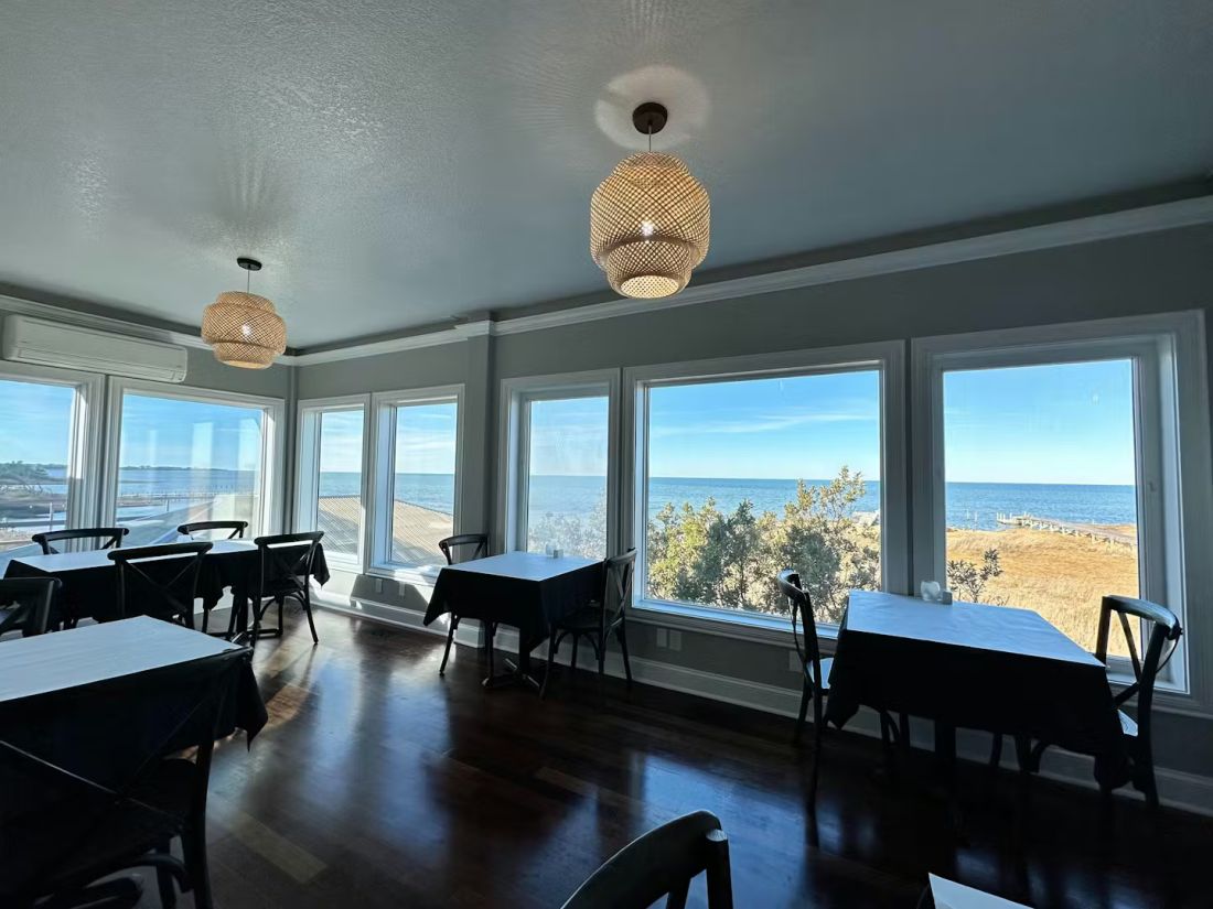 Contemporary coastal cuisine featuring locally sourced seafood, meats and produce, served in a waterfront setting with panoramic views of the Pamlico Sound