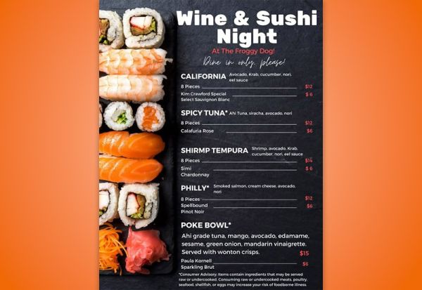 Welcome back Sushi & Wine Night on Saturdays from 4 pm - 9 pm. Chef Brandyn is rolling all your favorites. See you tomorrow!