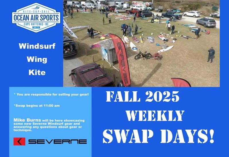 The Ocean Air Sports Weekly Swap Days are back! Once per week throughout October. You’re responsible for selling your own gear. Windsurf, kite, and wing gear are welcome! 🪂