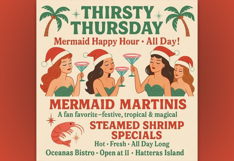 Can you believe one week from today is Christmas?!?! π Need a little break from the holiday shopping and wrapping? Grab your gals and pals and stop in the bistro for a cold one β¦ or two! Steamed shrimp and mermaid martinis on special all day! Open at 11!
