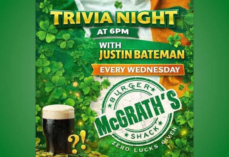 Join us at McGrathโs Burger Shack tonight at 6PM for Trivia Night!