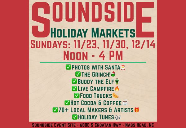 Soundside Markets, in Nags Head - perfect spot to work on your holiday shopping. Come stay with us and shop at the Soundside Event Site in Nags Head (near the outlets).