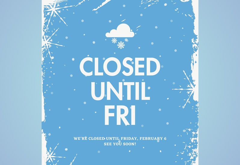 We’ll be closed the rest of the week, reopening on Friday, February 6th at 7am.