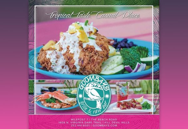 Island-style vibes merch, fresh seafood, and the best Kill Devil Rum cocktails — stop by Goombays for a good time! 🐊☀️