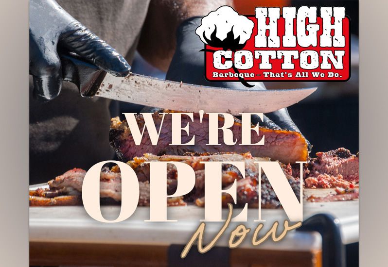Beginning at 11:00 am on Thursday, February 12, we'll be back and serving all your favorites. We can't wait to see you again at High Cotton BBQ!