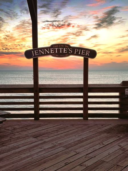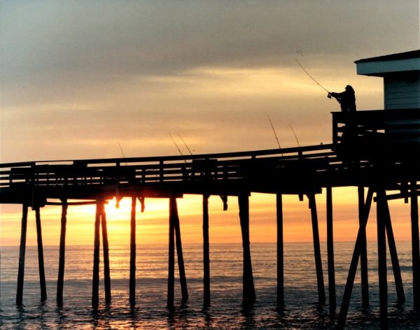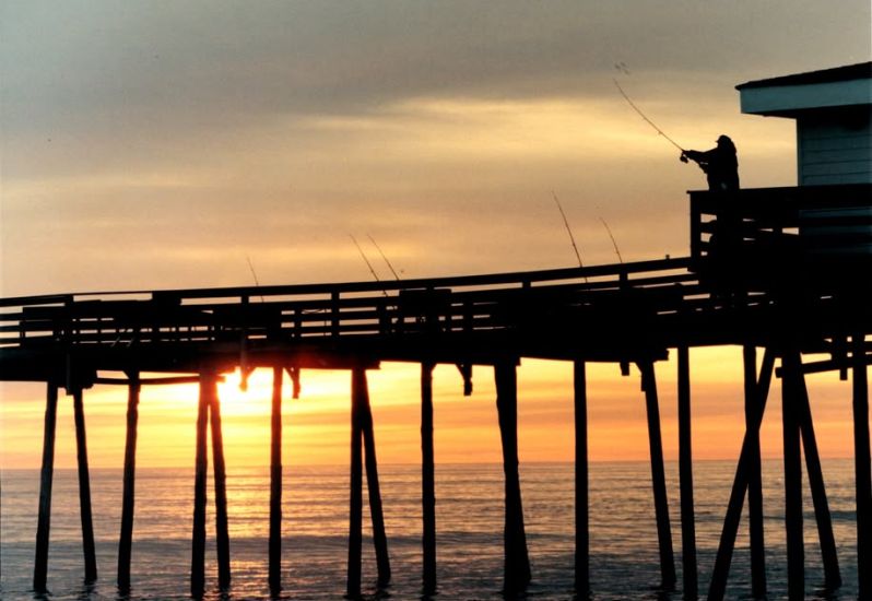 TBT -- Anglers are catching BLUES, SEA MULLET, PUFFERS and small SPECKLED TROUT. Ocean water temp 60 degrees, air temp low 55. Winds are NE at 14 knots. High tide 6:59 a.m. Low tide 1:36 p.m. A lone angler casts out at the old pier.