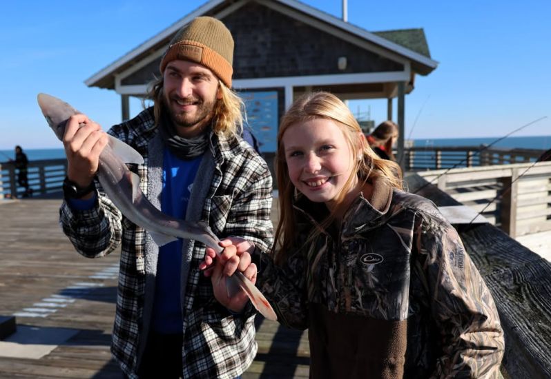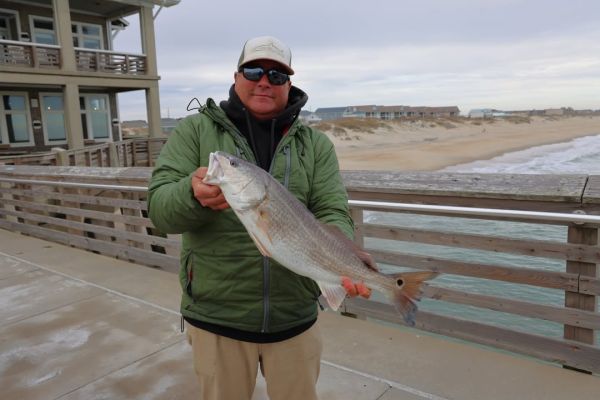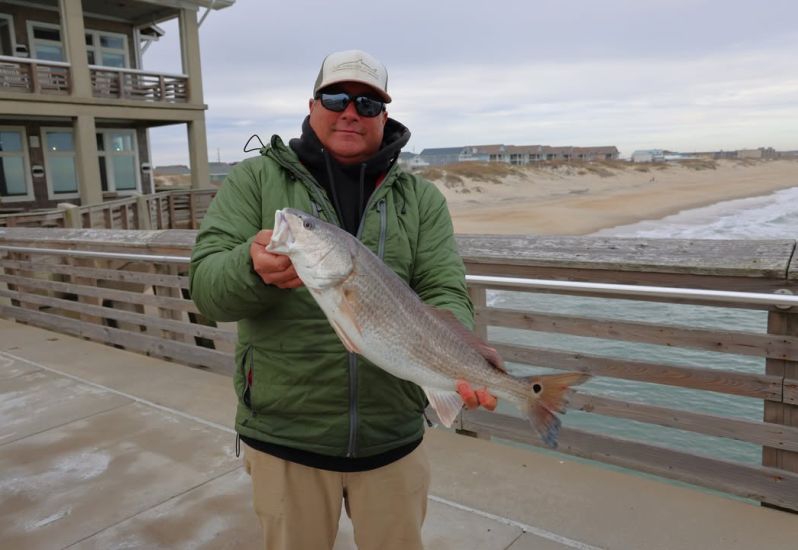 Greg landed this nice slot-sized PUPPY #DRUM earlier. Otherwise, #fishing is slow. Air temp 51 degrees at noon, #ocean temp 50. Winds are SE at 1 knot. High tide 6:03 a.m. Low 12:41 p.m.