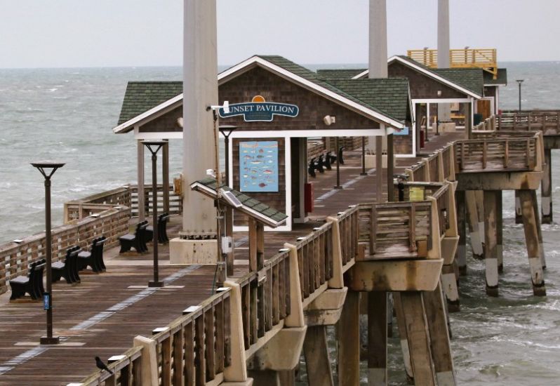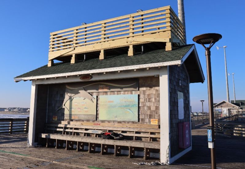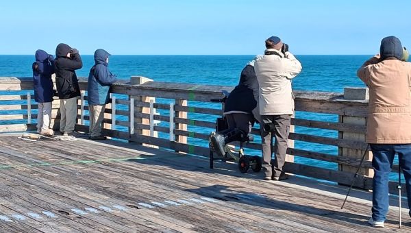 Half a dozen people are #bird watching from the end of the pier this morning. No one is #fishing but there are some solid swells rolling in. #Ocean temp 37 degrees, air temp 40 degrees. Winds are N at 8 knots. Low tide 9:58 a.m. High tide 3:40 p.m.