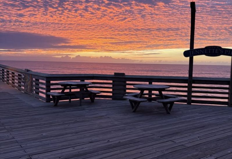 So far, one RED #DRUM catch and release. Otherwise, #ocean water temp 70 degrees and NE winds at 16 knots. Some of the anglers in the Outer Banks Association of Realtors #OBAR fishing tournament are on the pier this morning. Low tide 10:40 a.m. High tide 4:57 p.m.