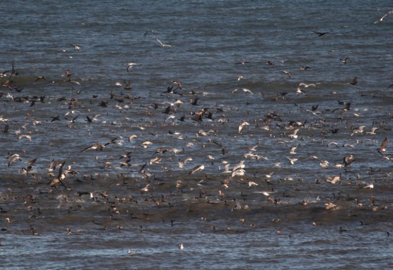 Thousands of birds including #cormorants, #gannets and #seagulls, were working off the end of the pier this morning. There has been some SHAD around this week too. Ocean temp 53 degrees. Winds are NW at 12 knots. High tide 5:38 a.m. and 12:14 p.m.