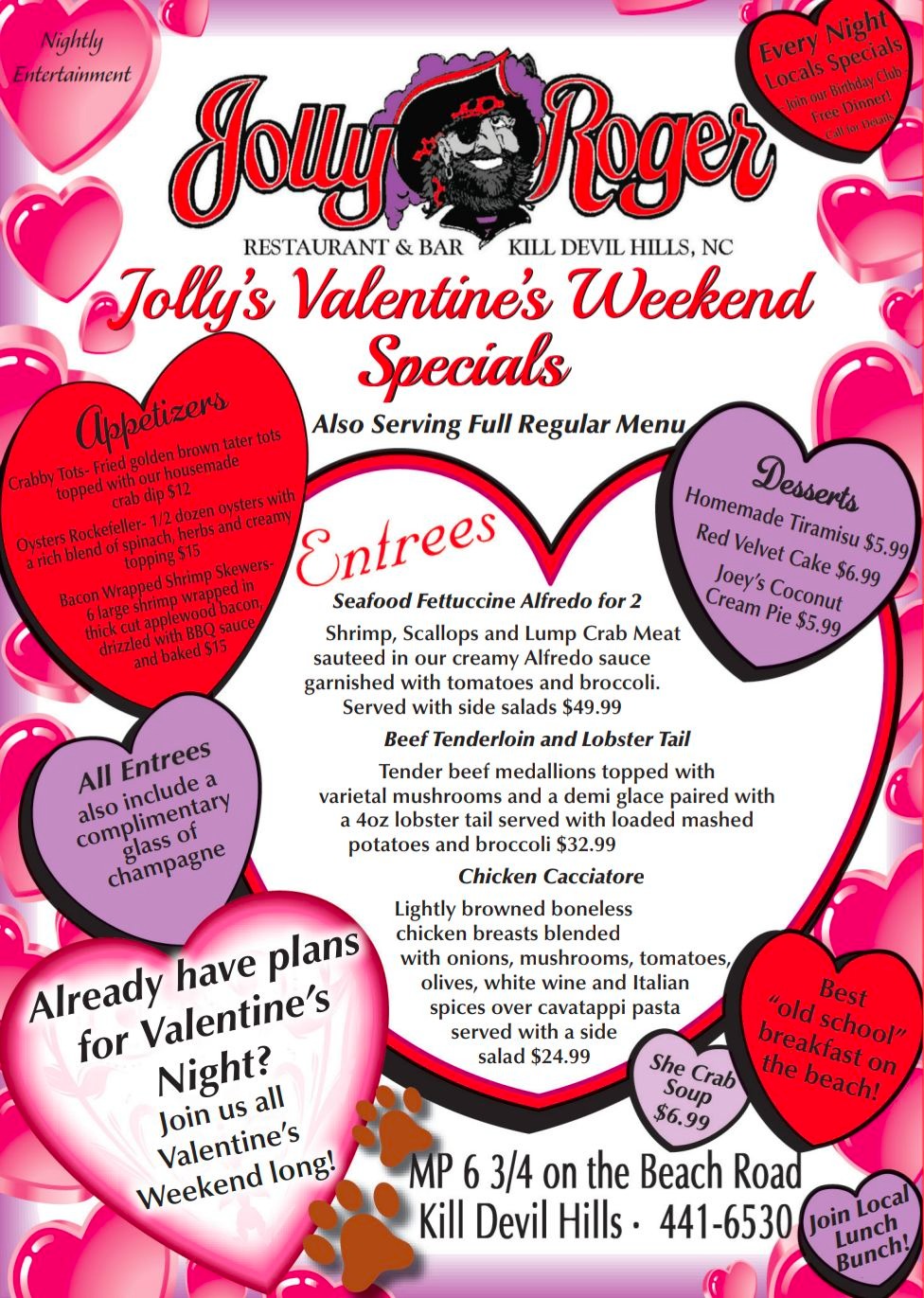 Jolly Roger Restaurant FacebookInstagramInstagramYoutubeContact us (252) 441-65301836 North Virginia Dare TrailKill Devil HillsClick here for hours, map, and directions jollyrogerobx.comEmail usPayment types: Cash, Gift certificatesVisa Mastercard American Express DiscoverYear founded: 1972Restaurant type: American & Family OrientedAmerican Fusion & GourmetBars & EntertainmentBreakfast SpotsDeliveryItalianLate-night MenusPizzaSeafood Specialties & Steam BarsSteaksSubs, Sandwiches, Dogs & BurgersTake-OutAtmosphere: Casual, Quirky, Family-FriendlyPrice range: $10-$30Reservations required: Not AcceptedRestaurant Features: Beach Road Setting, Pirate Décor, Famous $5.99 Breakfast Special, Nightly Entertainment, Gift ShopServices: DeliveryGood For GroupsGood For KidsOutdoor SeatingTake OutWaiter ServiceWalk-Ins WelcomeSpecialties: BreakfastBrunchDinnerDrinksEntertainmentLunchSeason: Year Round