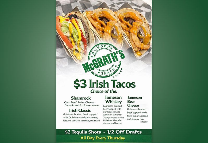 Ever tried our Luck of the Irish Burger? โ๏ธ๐ A half-pound Guinness beef patty topped with a quarter-pound of corned beef, fresh sauerkraut, Thousand Island dressing, and melted Swiss cheese, all served on hearty rye bread. We canโt wait to serve you soon!