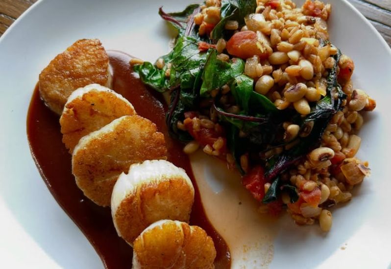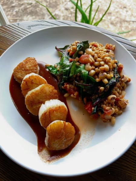 It’s here! Our fall menu has landed and this is just one of many delicious additions - Butter Seared Scallops with sautéed black-eyed peas, farrow, and swiss chard with a roasted beet and black cherry gastrique to finish.