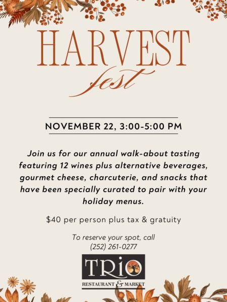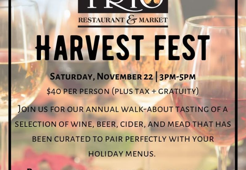 Harvest Fest is next Saturday, November 22nd! We will have a selection of wine, beer, mead, and cider at our walkabout tasting that has been specially curated to pair with your holiday menus. Call us to reserve your spot!