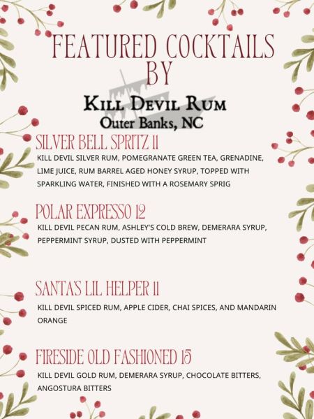 Cocktail features for Monday nights trivia with @outerbanksdistilling! Trivia starts at 5pm in the mezzanine - we have limited seats available so please arrive a little early to secure your spot!