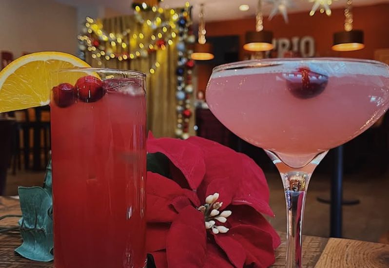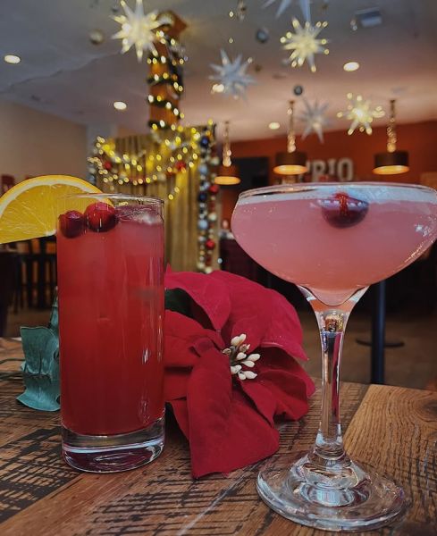 Pictured: The Not Getting “Blitz”en (N/A) and our Bumble Bubblez (made with 1000 Piers Winter Tide Gin)