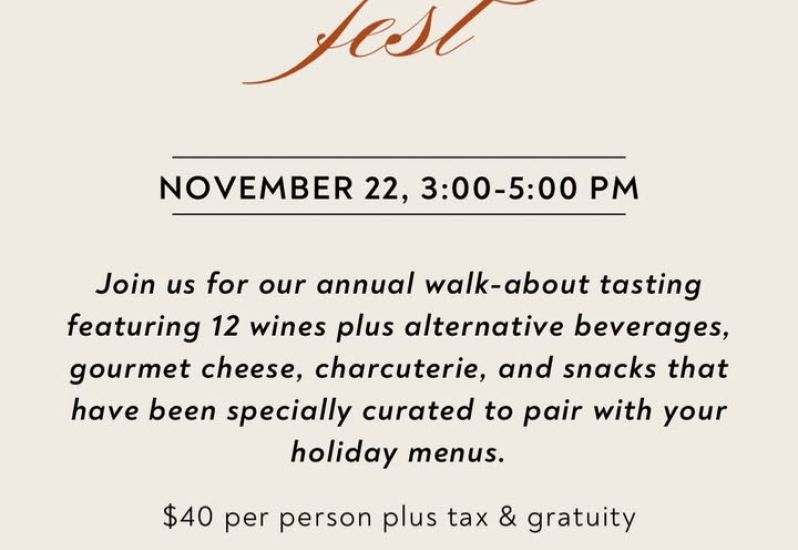This Saturday, November 22nd, from 3-5pm we will be hosting our annual Harvest Fest tasting! This walkabout tasting will feature 12 different wines plus alternative beverages, a fantastic selection of our cheese and charcuterie, and snacks. Call us to reserve your spot!