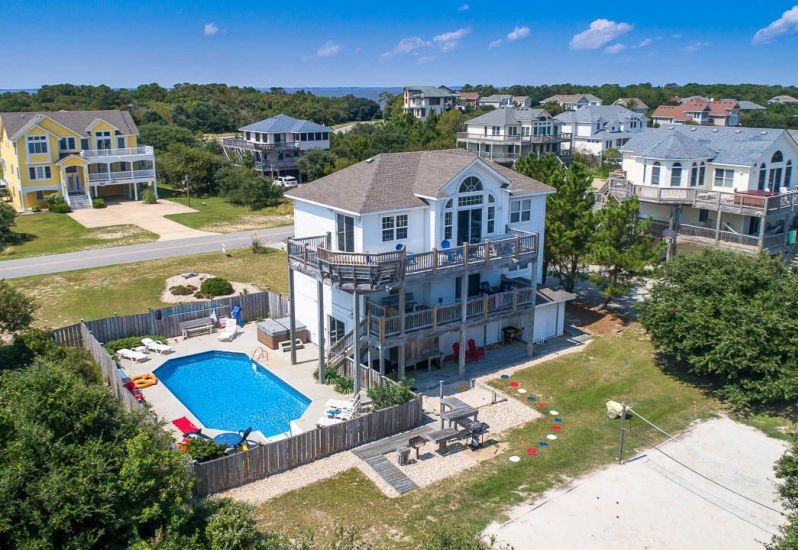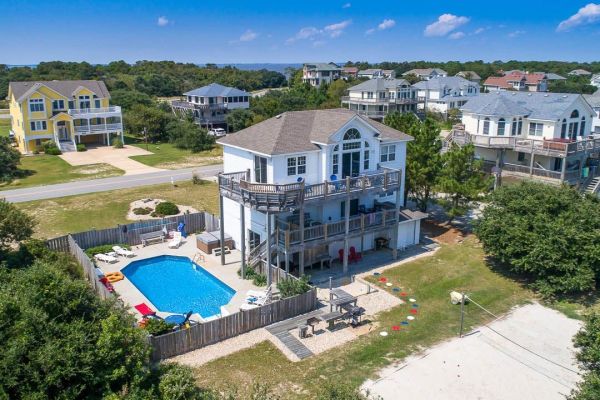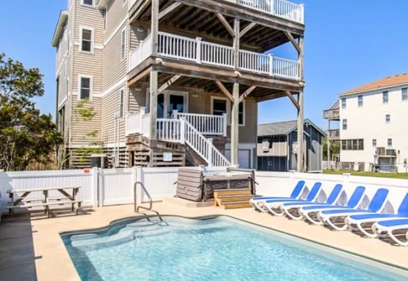 OBX Diamond is a 7 bedroom, sound front, dog-friendly home in Kitty Hawk that offers a private pool, foosball and pool table, hot tub, pool towels and Blue standard bedding, and more. Guests noted that this home... See More