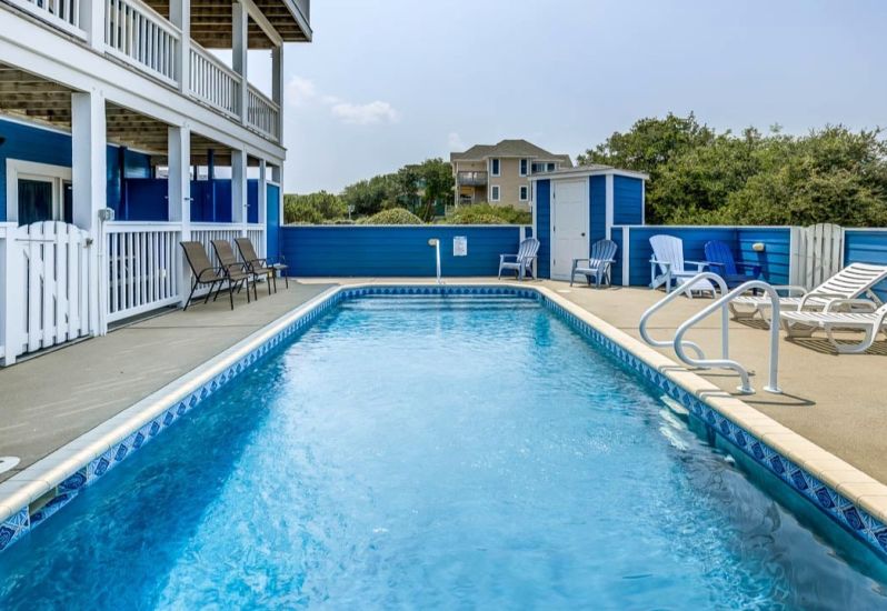 In Between Dreams is a 6 bedroom, dog-friendly, oceanside home in Duck that offers a private pool, hot tub, and access to the community pool and tennis courts. Guest noted that being equal distance from the beach and shops was the best part of the home, and the home had everything you could need for your vacation!⭐