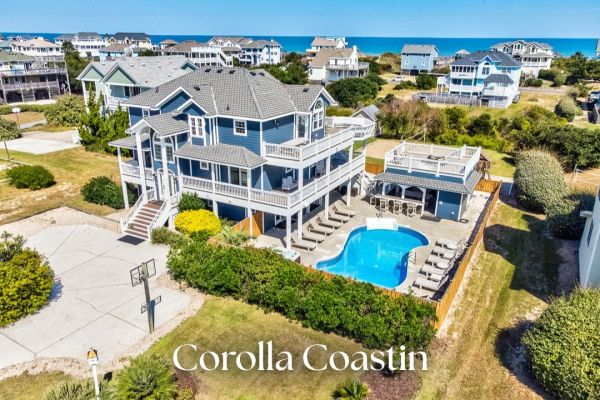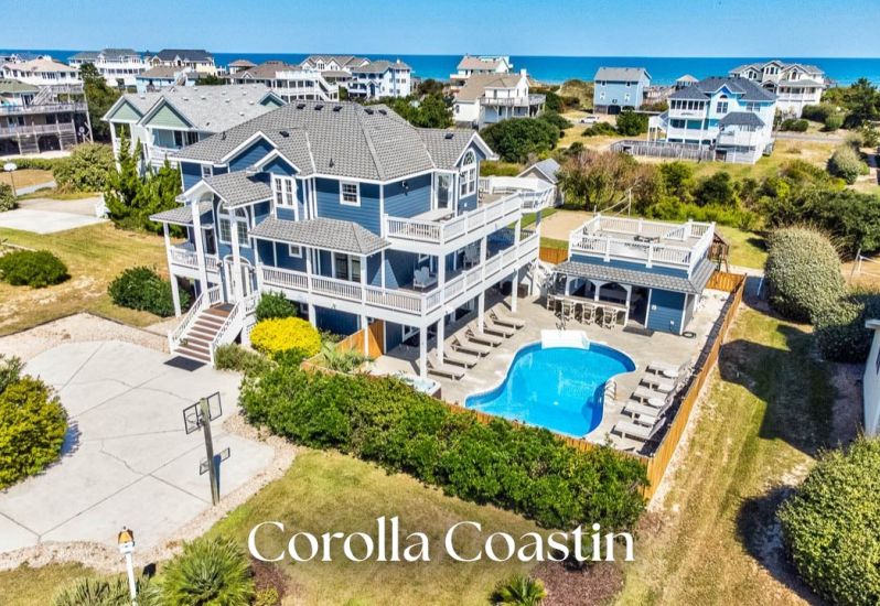 "Corolla Coastin" is a family-friendly vacation home packed with fun, featuring a private pool and hot tub, a two-story cabana, playground, volleyball court, and lawn games. The interior offers stylish finishes, a well-equipped... See More