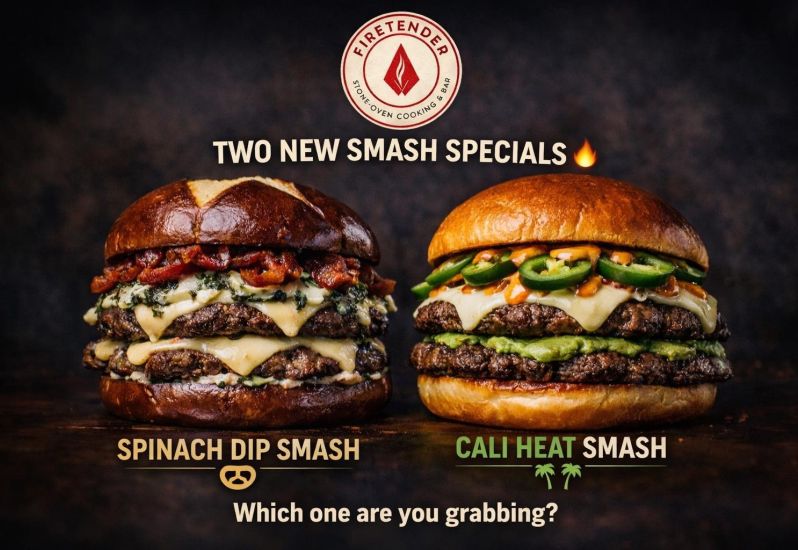 Double smash patties topped with our creamy spinach & artichoke spread, melted Swiss, and crispy bacon on a toasted pretzel bun.