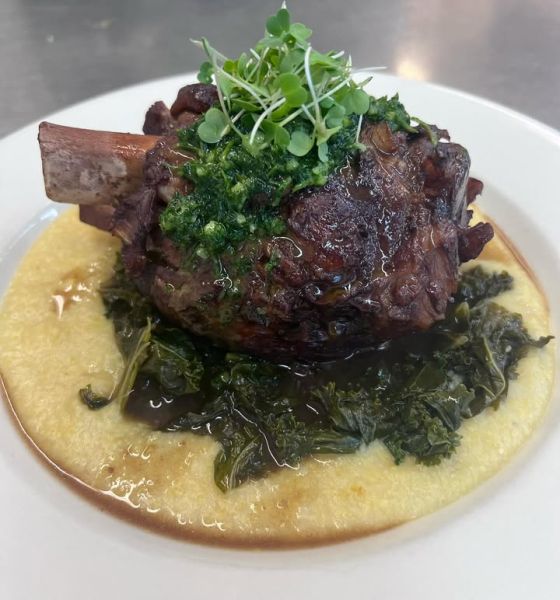 Chef Eric’s Slow Braised Ossa Bucco over Cheese Grits, Tender Kale, and topped with Lemon Parsley Gremolata! Join us for dinner or tapas from 4:30-8:00pm this evening! #waterfrontdining #ossobuco