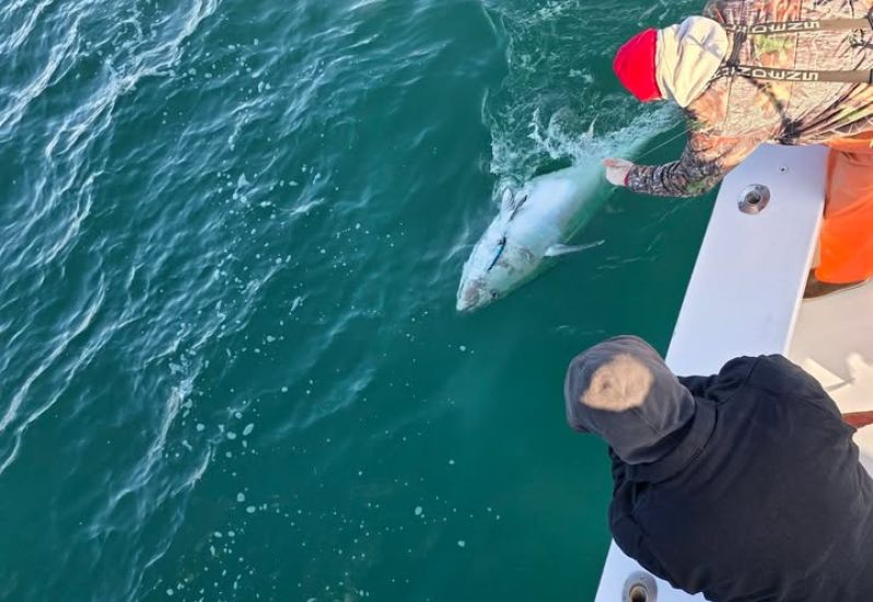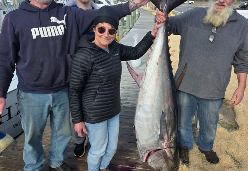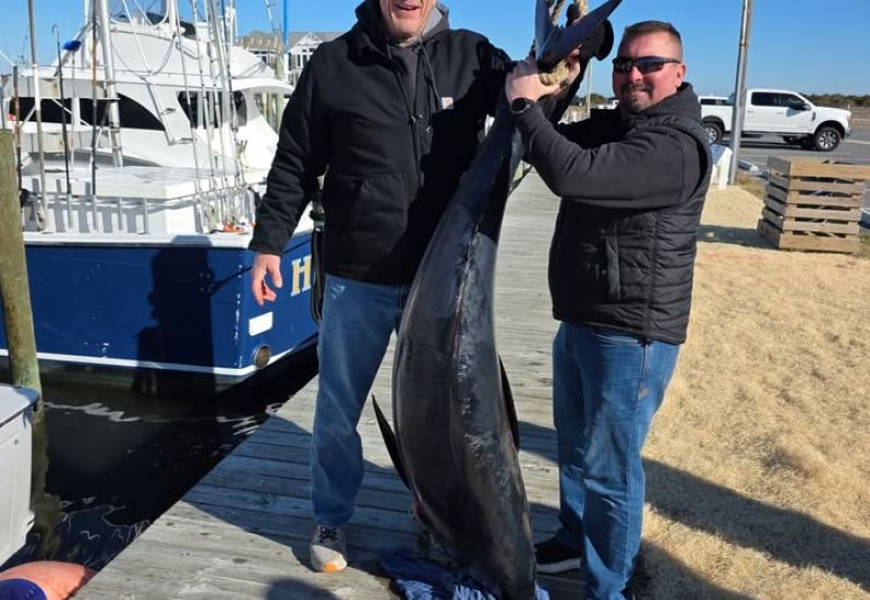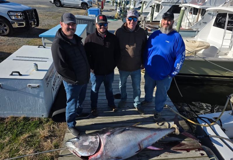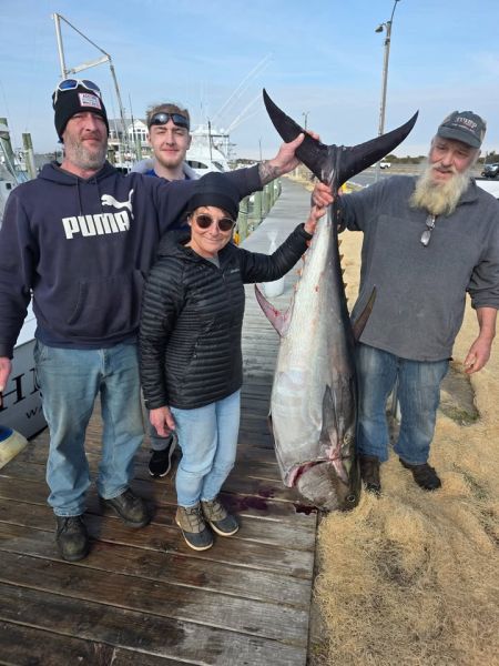 70” recreational bluefin first thing this morning right off of Pea Island. Happy family!!